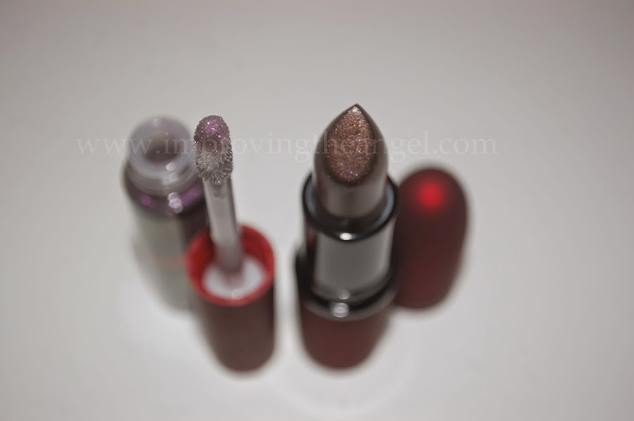 No tenía ni idea de que iban a colaborar juntos otra vez y cuando la vi en el stand me llamó muchísimo la atención (como véis es un color bastante especial y muy dificil de explicar. En las fotos se ve como dorado, pero en realidad no es así del todo y en los labios queda como un tono grisaceo dorado con destellos muy raro y chulo a la vez), pero no me gustaba porque, como os digo, lo veía super raro y para nada favorecedor. La cosa cambió cuando se lo vi puesto a la chica que vino a atenderme. En ese momento caí rendida ante el y sabía que me lo iba a comprar.