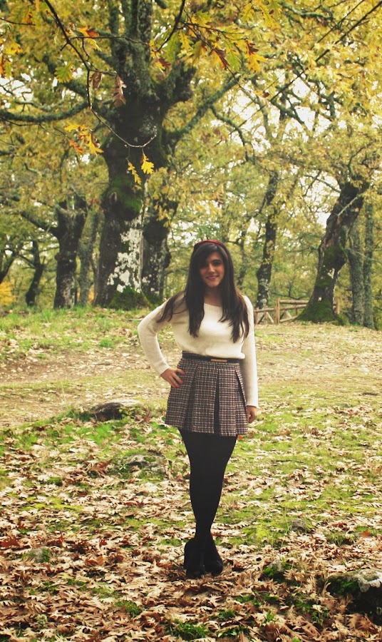 Si algún día os levantáis con ganas de vestir preppy recordad que la combinación jersey + falda de cuadros (O pata de gallo, o algo con lazos, o bies...) es ganadora en otoño e invierno. Yo elegí un jersey monocolor pero lo más normal en el estilo es llevar un jersey con motivos (Puntos, rayas, renos, copos de nieve...), es lo que suelen hacer en Estados Unidos. Yo no me atrevo a tanto aquí, aunque me encantaría.