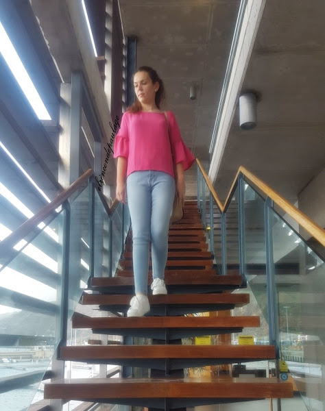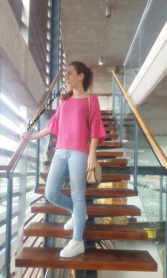 Yo me la he puesto con un vaquero y unas zapatillas blancas básicas, pero que también había servido con una sandalias o un poco de tacón y quedábamos como más "arregladas".