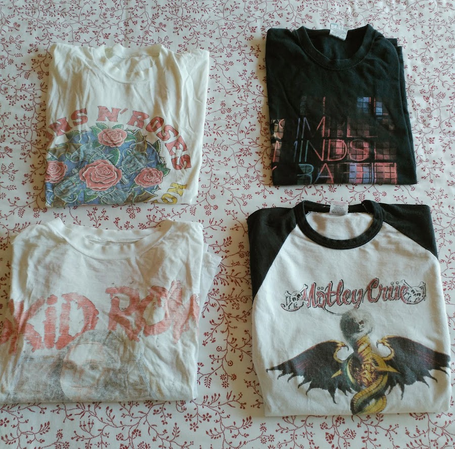Para que os hagáis unas ideas del look, aquí tenéis unas fotos. (También os dejo alguna que otra foto de camisetas de grupo de rock de los 80 autenticas).