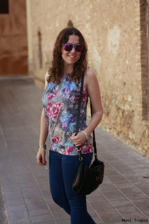 Estas fotos las tomamos el fin de semana pasado. Era uno de esos días que sabíamos cuando salíamos de casa pero no cuando íbamos a volver. Teníamos comida comida con unos amigos y luego nos fuimos a ver a otra amiga jugar un Roller Derbi (deporte que no conocía y me encantó) por eso me decanté por unos vaqueros todoterreno con un bonito top floreado y mis adoradas cangrejeras que me han rejuvenecer unos.. 25 años y volver a tantos y tantos momentos de mi infancia.