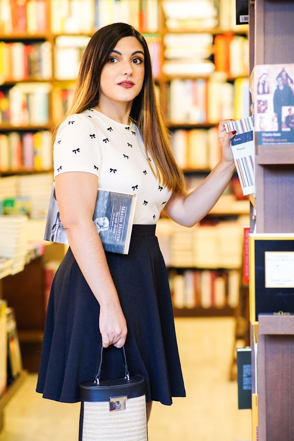Curiosamente, casi nunca hago un outfit de vuelta a clase. De hecho, creo que solo lo hice una vez hace años... Pero esta vez me apetecía hacer este clásico blogueril porque esta camiseta de lacitos que os enseño me inspira para ello. Me recuerda a una colección similar que mi bloguera favorita utilizó para sacarse unas fotos de stock en la librería y sentía que tenía que recrear ese sentimiento.