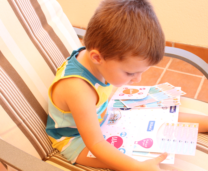Ya veis a Sergio en la foto todo concentrado con sus nuevas etiquetas para ropa que le he cogido y es que en el cole quieren que todas sus cosas tengan su nombre y escribirlo a boli, como que no, he preferido unas etiquetas para marcar ropa y ya que me ponía, también para marcar sus zapatos, mochila, cuentos que lleve al cole para leer, no me he podido resistir a estos tan monos con los animales, que le voy a hacer. Hay etiquetas de todas clases, las de la ropa se planchan y una vez adheridas aguantan los lavados perfectamente, así que te despreocupas. También hay la opción de poner el teléfono en las etiquetas o en los llaveros por si algo se perdiese.