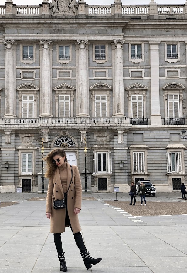 Parece que la primavera se hace esperar, así que de nuevo os traigo un look con abrigo y con pelos de loca ya que en la zona del Palacio Real de Madrid hacia mucho viento.
