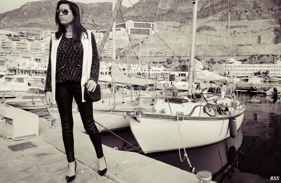 Hoy además del look os enseño uno de mis sitios favoritos donde ir a comer, dar un paseo o tomarse un café se convierte en un auténtico placer...el puerto de Aguadulce.