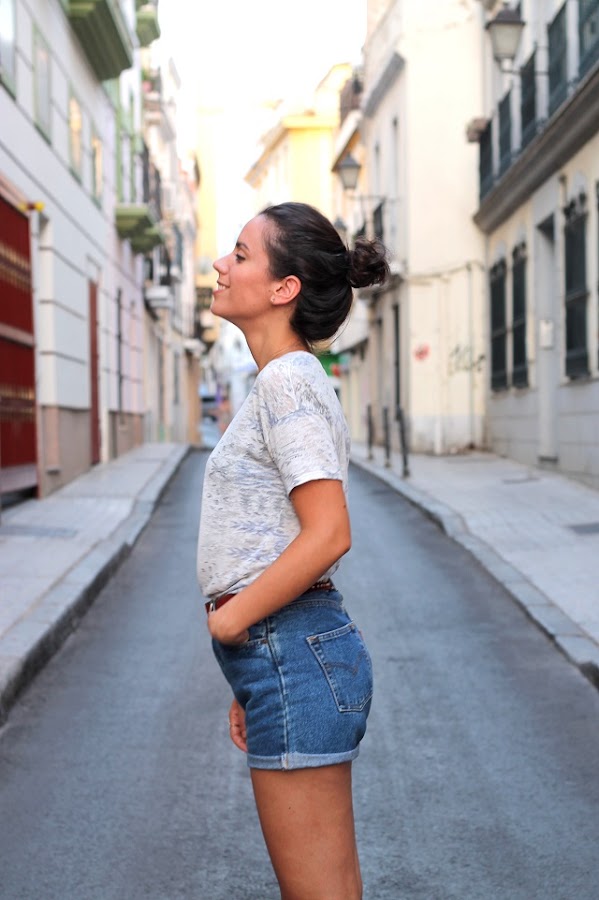 Salir de casa con bastante calor, y sabiendo que te espera un buen ratito de paseo...lo primero que se me viene a la cabeza son unas zapatillas cómodas y algún vestido fresquito, pero cuando sabes que vas a "trotear" el vestido/falda pasa a un segundo plano ;) Y aquí llega mi querido y amado Levis vintage! Este es última adquisición. Me los habéis podido ver en negro, gris, blanco, vaquero claro, y muy oscuro...pero tenía muchas ganas de un tono intermedio! Reconozco que ahora preparando la colección de cara a otoño de Dorado Vintage, me estoy volviendo un poquito loca. Nos están llegando maravillas maravillosas. Levis largos tipo mom jeans y slim fit, de etiqueta naranja, la etiqueta más exclusiva vintage en Levis...no puedo estar más contenta! Y es que estamos completamente sumergidos en la tienda, trabajando mucho para hacer la inauguración oficial en septiembre...desde luego os enteraréis porque daré bastante la brasa por las redes sociales cuando se acerque la fecha :)