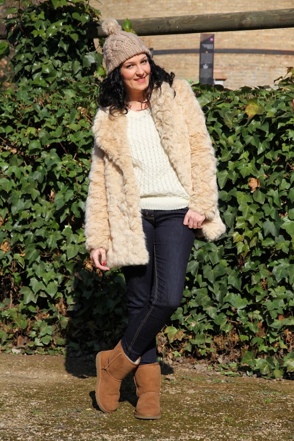 Yo creía que este invierno iba a conseguir esquivar los resfriados ya que todo mi entorno ha estado o bien resfriado o con la gripe. Pues bien, a finales de la semana pasada caí yo, suerte que solo es un resfriado pero algunos días he ido a trabajar sin encontrarme muy bien. Así que sin muchas ganas de pensar en looks he tirado de estilismos cómodos y sobre todo muy calentitos como el de hoy. Un outfit súper sencillo con jersey de punto, jeans pitillo y mis queridas botas UGG, que como ya os comenté en uno de uno de mis últimos post, es la última adquisición que se ha sumado a mi colección. El abrigo de pelo sintético es el regalo que me hicieron mis amigas por mi cumple este año, aunque no había salido todavía por aquí me gusta tanto que no me lo he quitado en todo el invierno como habéis visto en mis redes sociales.