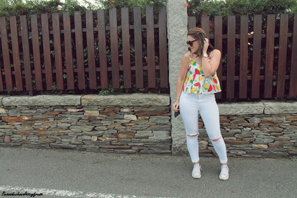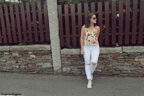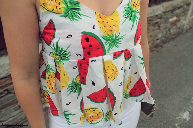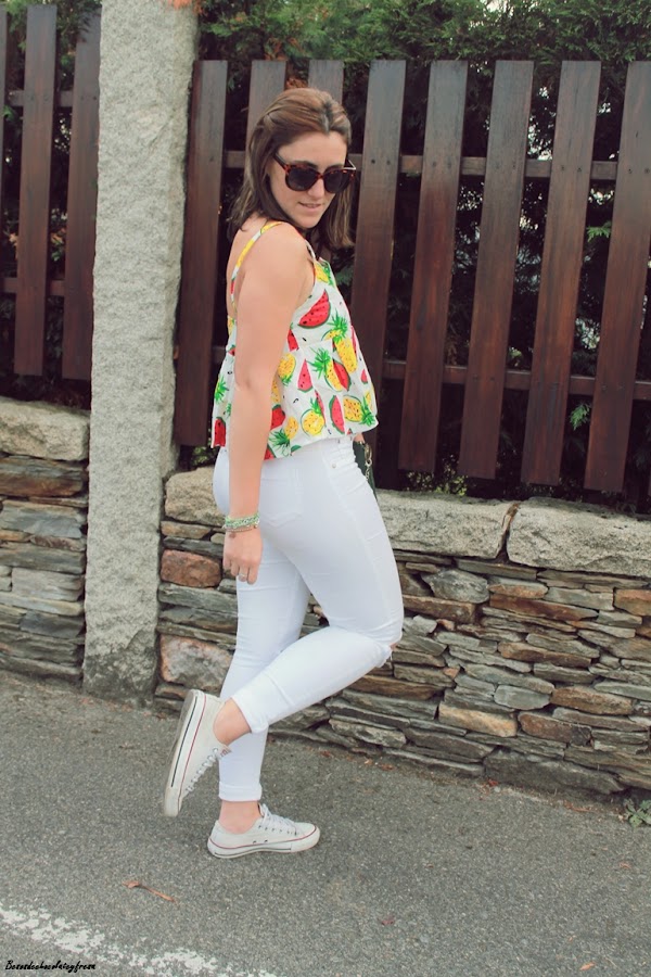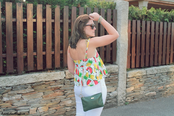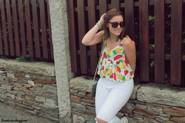 Las sandías y piñas estuvieron presentes toda la temporada de verano y aunque apetece ya ir poniendo cosas amorosas de otoño-invierno, de repente viene un día caluroso en medio y una se viene arriba y para seguir recordando el calor, el verano y el sol, aposté por este top tan divertido y fresco que aporta un extra de vitaminas.