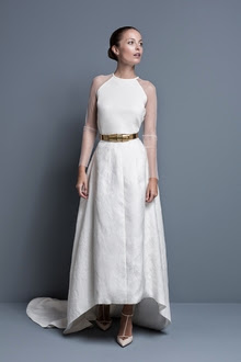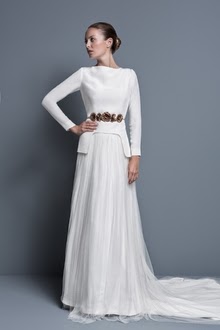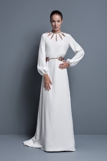 Partiendo de la base de que me gustan los vestidos sencillos, de líneas puras, con caída, y de que a pesar de casarme en junio quiero llevar los brazos cubiertos, la colección de Colour Nude para novias de este año me parece perfecta. Basta ver estos ejemplos para hacerse una idea (perdonad la calidad de las imágenes, pero en su web no las he podido sacar con más resolución y quería ponerlas en tamaño grande) :