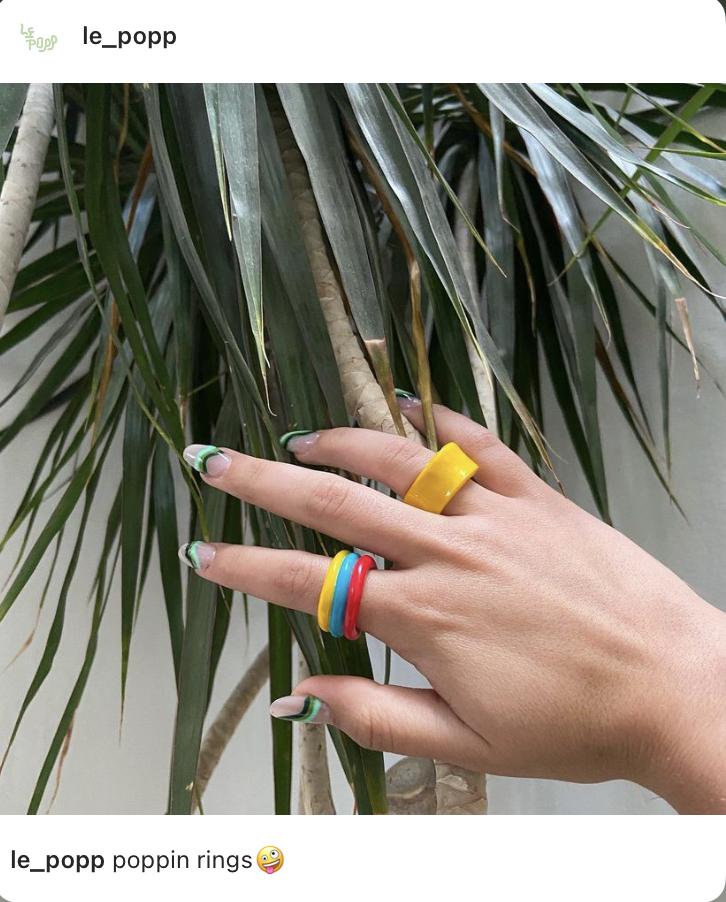 Primavera es igual a sandalias y vestidos y más ahora que pasamos tanto tiempo en casa. Ya tengo dos pares de esta marca mexicana y este que les dejo aquí seguro será el siguiente par. Chequen las otras opciones que hay AQUI y si quieren conocer más de la marca y sus procesos, entrevisté a las fundadoras en Lula Fashion Talks. Dos mujeres empresarias super visionarias y que han crecido muchísimo a pesar de la pandemia.Anillos chunky Le Pop