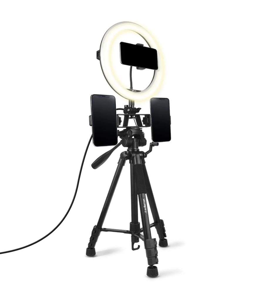Siempre les comparto los mejores findings de esta tienda y este aro de luz con tripie es de las mejores cosas que he pedido. El precio es muy bueno por lo que incluye. El aro ya tiene un soporte para el celular incluido y aparte hay otros dos soportes que no son parte del aro. El tripié te permite colocar el aro o una cámara profesional y tiene un indicador de burbuja para asegurarte que está bien balanceada. El aro es de tamaño mediano y tiene 3 tonalidades. Es una herramienta muy buena para quien comienza con sus redes o necesita mejor iluminación para una junta en zoom o fotos de cerca.Good Vibes