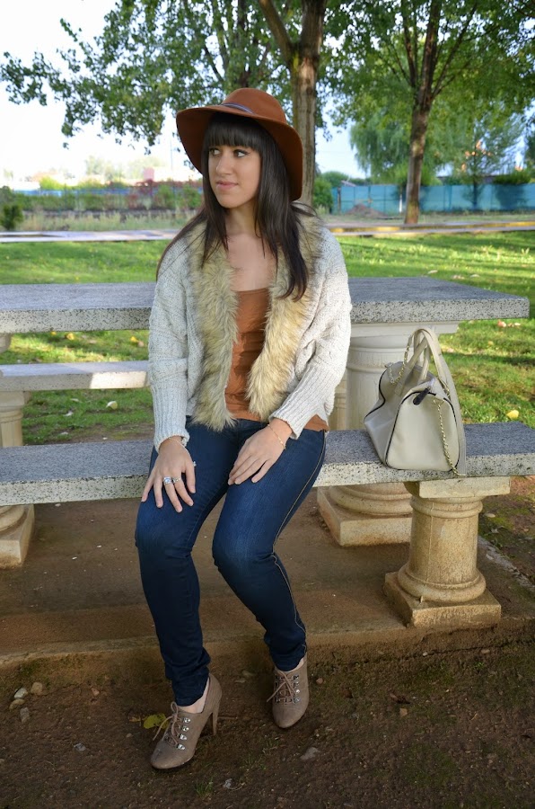 Esta semana recibí el último pedido a la tienda online Tidebuy en el que había elegido esta chaqueta de punto y pelo, una prenda muy adecuada para comenzar el otoño. En esta época predominan los tonos marrones y este look es el resultado de la combinación de algunos de ellos.