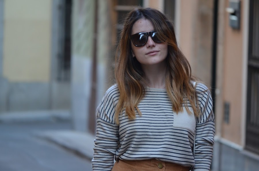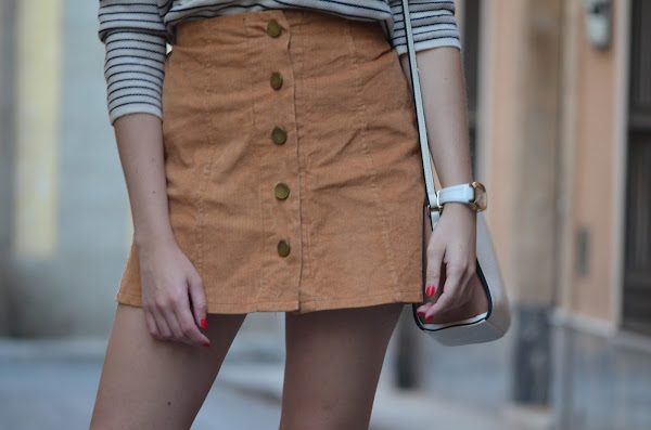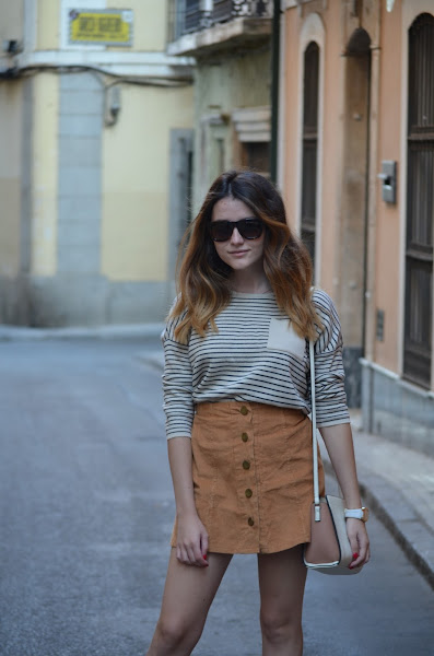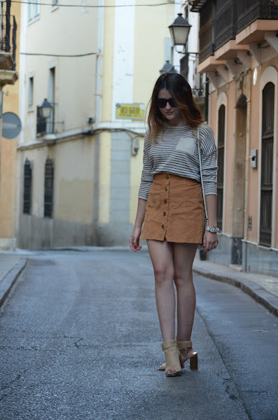 Hoy os muestro unas fotos que realmente me gustó hacer y es que aprovechamos unos días con unas temperaturas un poco más bajas para sacar este jersey de media manga y esta falda de la web Romwe Me parecen unos colores perfectos para el otoño, ese otoño que parece no llegar nunca :( Decidí estrenar mis nuevas sandalias cerradas pero abiertas por el talón de la web Pinkbasis. ¿Qué os parece?