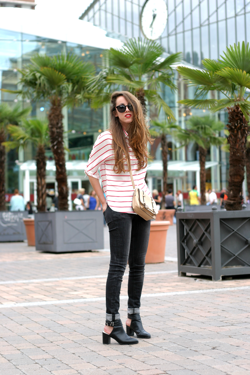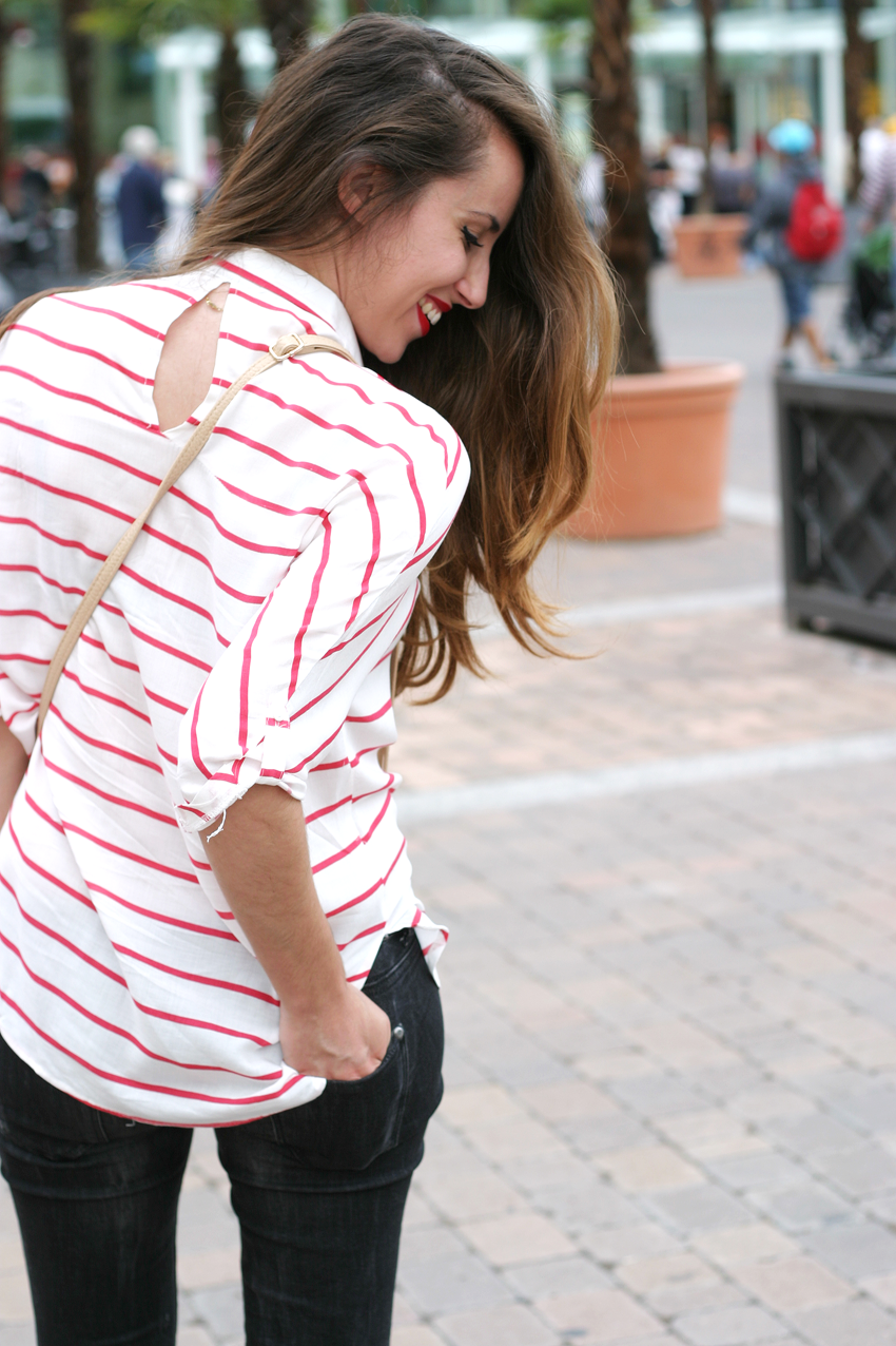 now back to show you my red striped shirt but this time with a completely different look that you saw here. An urban look for work in the city, running errands ... Definitely a convenient and simple outfit for our day to day.