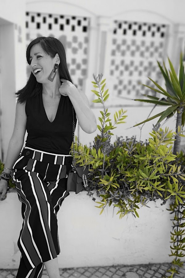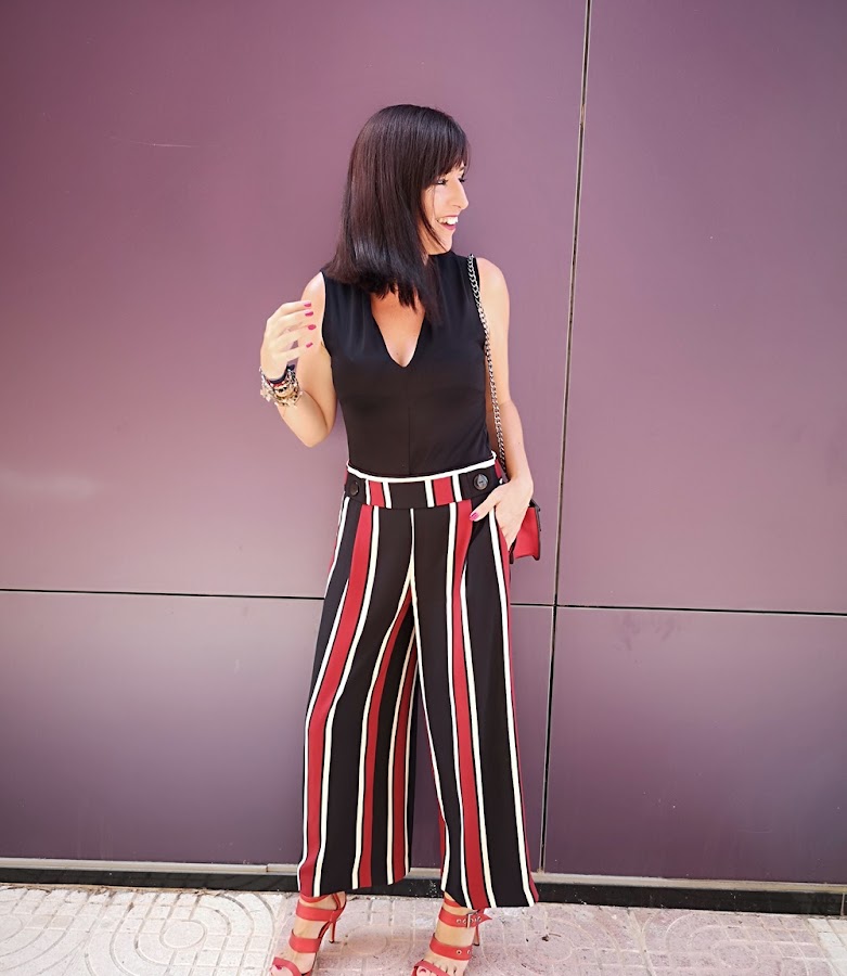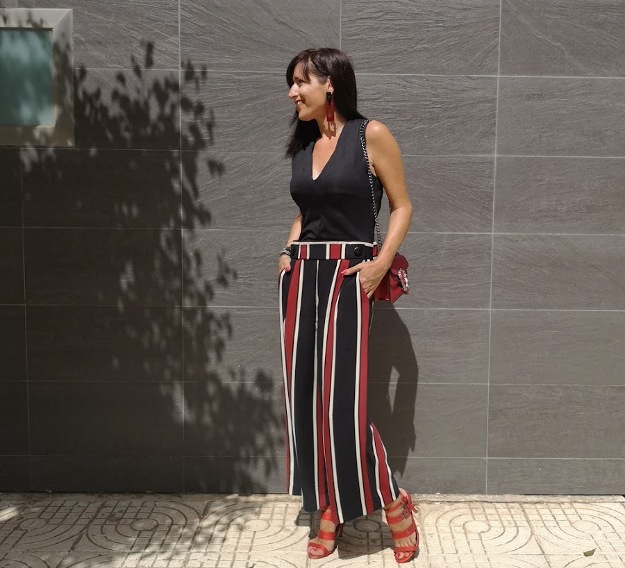 Hoy os traigo un look total ZARA , pantalón de rayas amplio que compre en rebajas y que estoy segura que sacare mucho partido este otoño y body negro de la nueva temporada que no puede faltar en un buen fondo de armario.