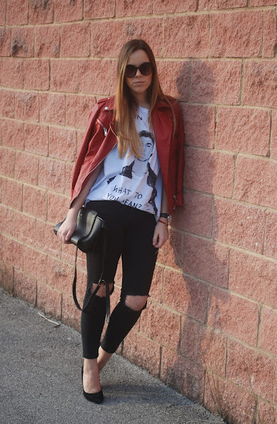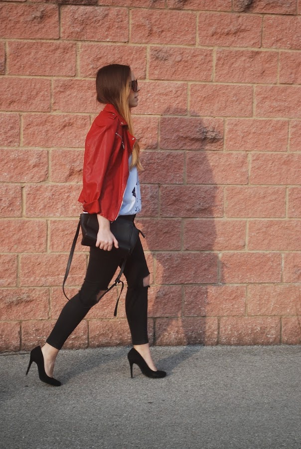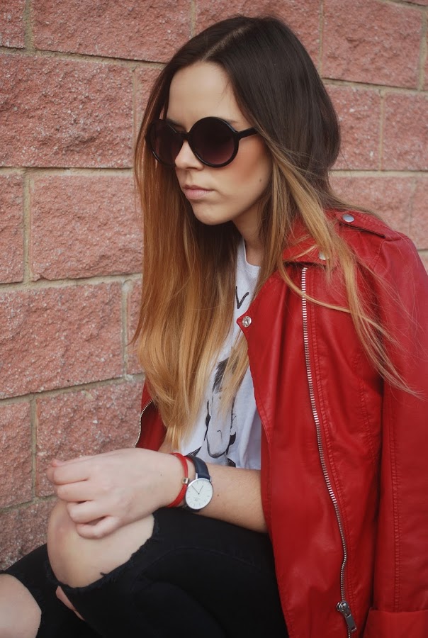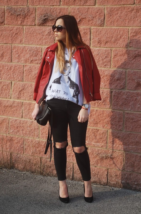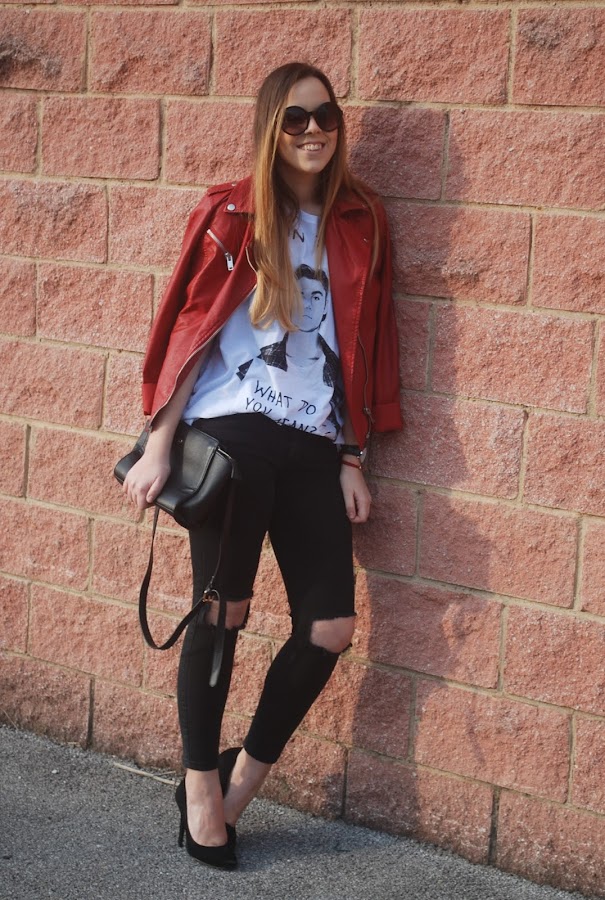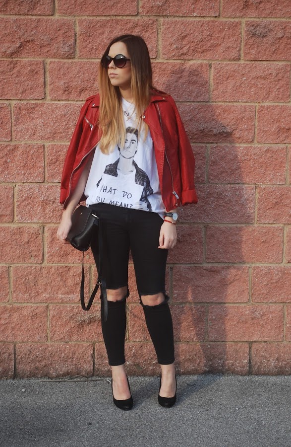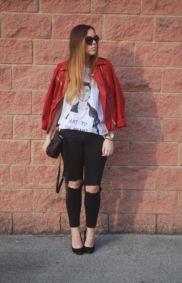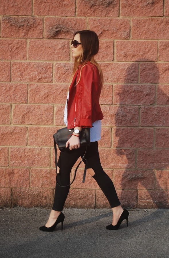 También rescaté del armario mi biker roja, que hacía mucho que no ponía y me encanta. El resto de prendas las habéis visto mil veces.