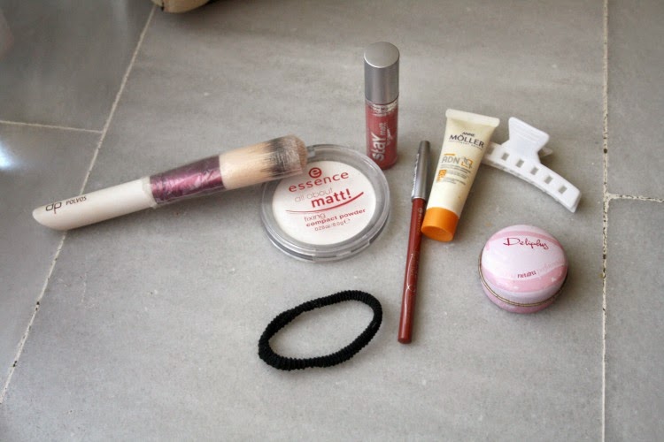 Normally I don"t wear make up at all, but when I do, I need a powder and brush to control my oily skin. I always have with me lip balm and sunscreen because I"m pale (very pale...). Also, a band or something to pull my hair up. The last weeks I have been using this lip combo: a lip pencil and a lip gloss ""stay matt"" from essence. Love the natural look of it.