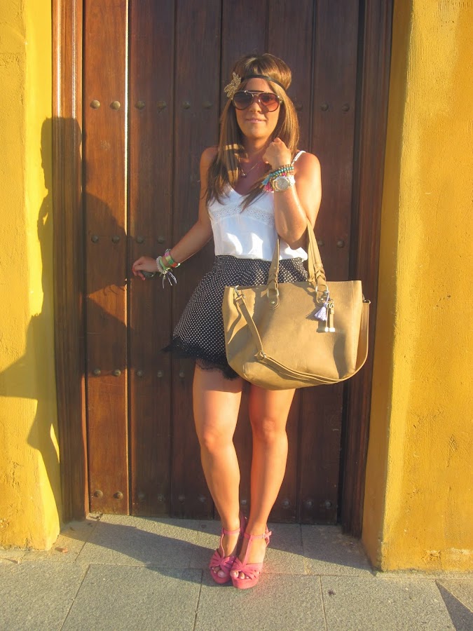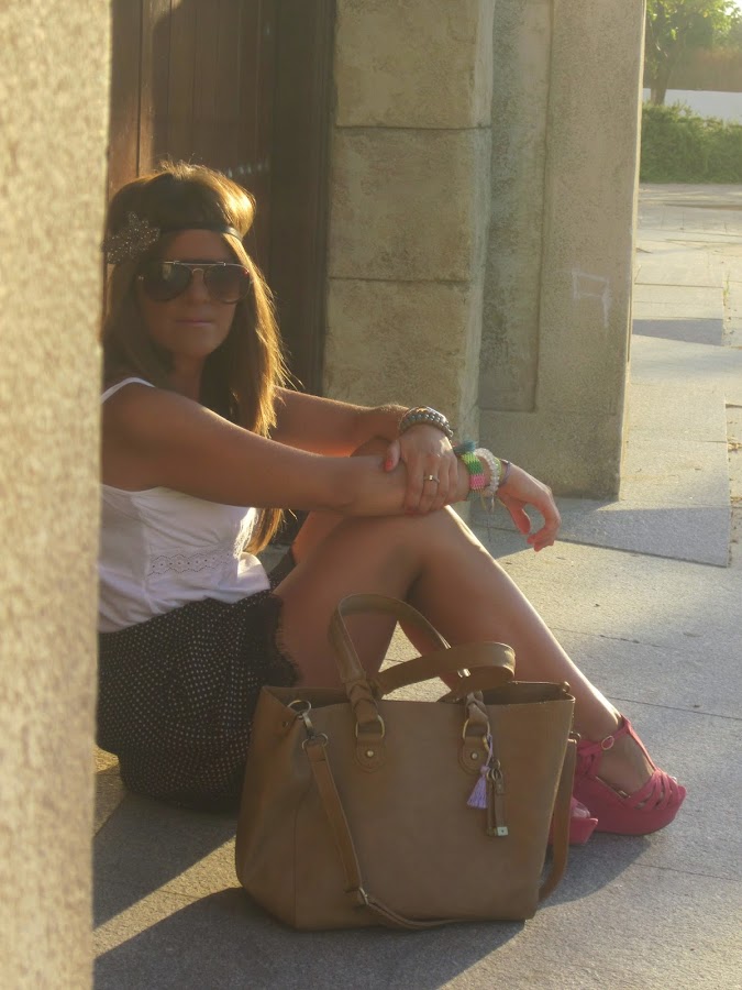 Hoy os enseño un look compuesto por mis últimas compras de las rebajas (el bolso, el calzado y los shorts) y un top que como se suele decir "tiene más años que matusalem" ya que era de mi madre cuando era joven, y con esto, queda demostrado que las modas siempre vuelven.