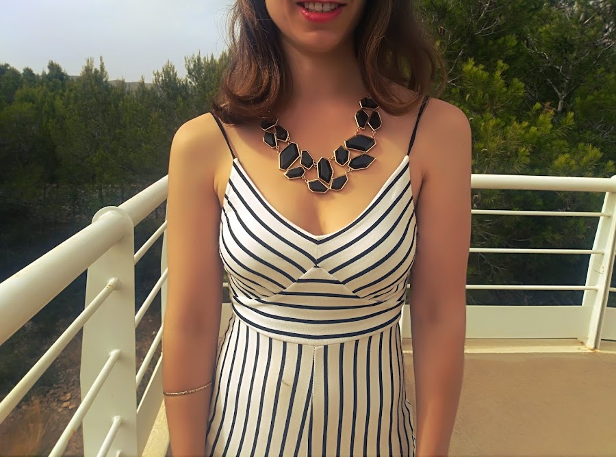 En verano soy mucho de llevar monos, tanto sean cortos, largos, de tirantes como manga corta. Desde que hace unos años los descubrí he ido haciendo mi pequeña colección. Concretamente el de hoy, es uno de mis favoritos y no sólo por ser de rayas (tan en tendencia desde la primavera) sino también porque fue un regalo muy especial de unas amigas para mi cumple del año pasado. Si os gusta tanto como a mí, deciros que en Stradivarius he visto que hay uno muy parecido os lo dejo aquí. El resto del conjunto es muy sencillo ya que le quería dar el protagonismo al mono, para ello lo he combinado con unas sandalias negras con algo de tacón, un bolsito de mimbre (que tanto estamos viendo en las tiendas) y algo de bisutería. El conjunto de hoy me ideal perfecto para el verano, sin duda será una opción a la que recurriré mucho. ¿Qué os parece el conjunto? ¿Os lo pondríais? ¿Cómo combinaríais el mono?