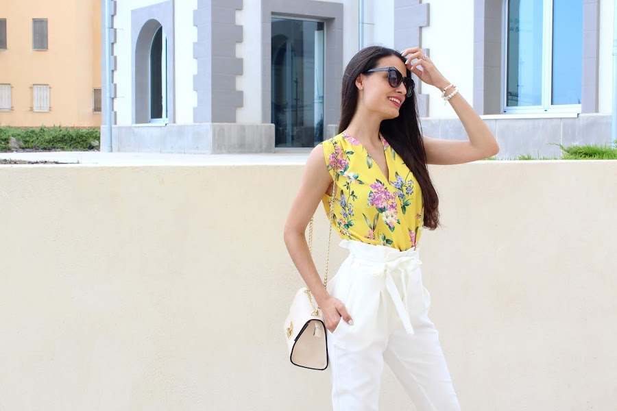 Llevo un ideal PANTALÓN blanco que resulta comodísimo ya que el tejido es un poco elástico. Además lleva un lazo en la cintura por lo que permite ajustarlo genial.
