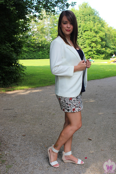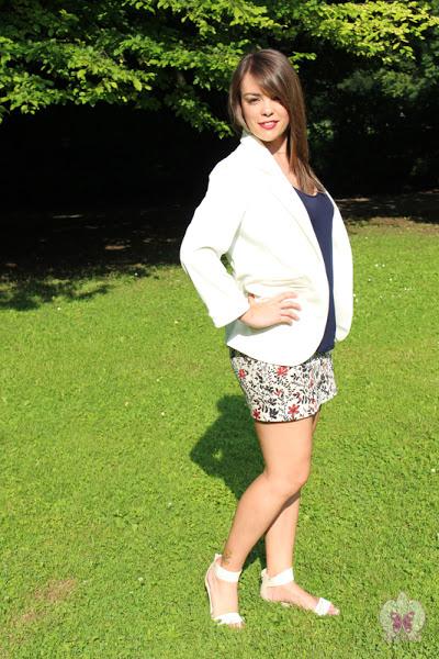 ¿Qué tal estáis? Yo encantada de traeros un nuevo outfit, ya que eso significa que estreno ropita. En este caso tengo nueva blazer blanca de SheIn y también estreno en este look la camisa de tirantes de Zara, en azul marino y de tela de gasa súper suelta, ligera y cómoda, a la par que elegante.