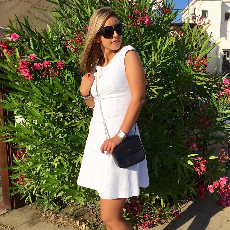 ¡Buenas noches amores! Empezamos nueva semana, después de un finde de desconexión total. Una de las prendas que me encantan para el verano son los vestidos blancos. El que os muestro hoy es perfecto para ir algún evento en el que tengas que ir arreglada como un bautizo o comunión, pero también puedes llevarlo para salir a cenar una noche. Lo combiné con unos stilettos negros y mi bolso de Tous.