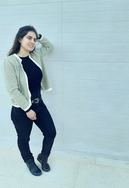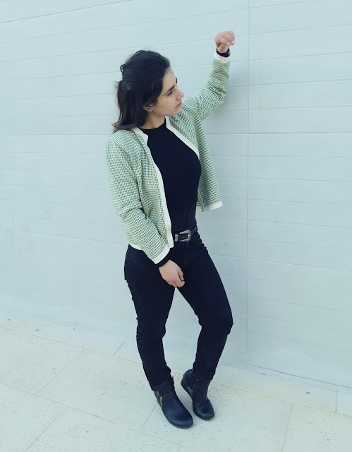 Buenos días y feliz año nuevo. Espero que hayáis tenido una buena entrada al 2021 y que este año esté lleno de buenos propósitos, trabajo y salud para todos. Antes que nada, muchas gracias por vuestras visitas. Para el primer post del año lo he hecho con un look sencillo en tonos negros y una chaqueta blanca y verde que le da el toque de color que necesita el conjunto.
