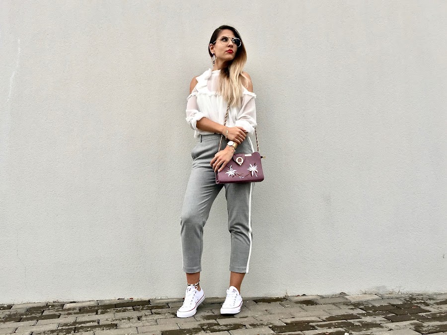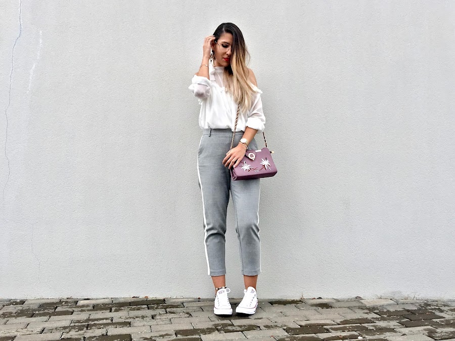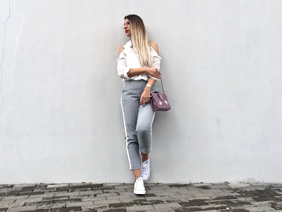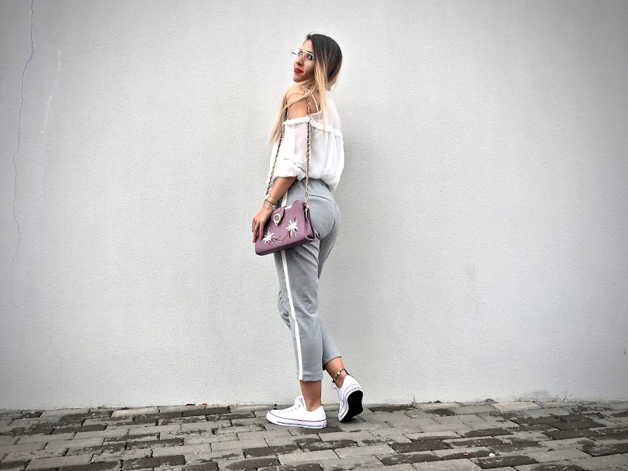 La he combinado con los famosos joggers grises de Zara con una raya blanca lateral. Súper cómodos!!