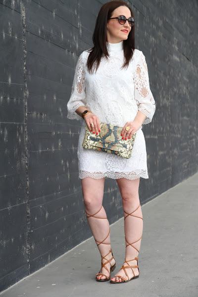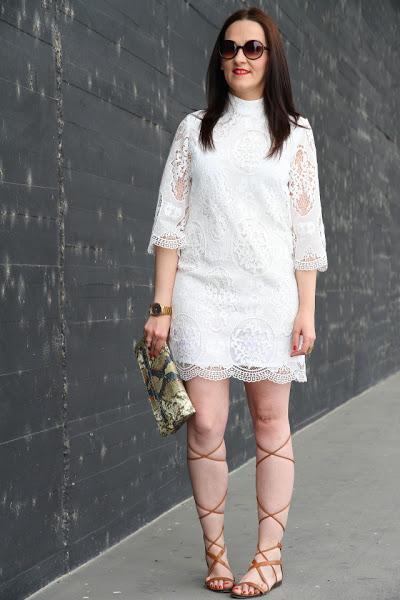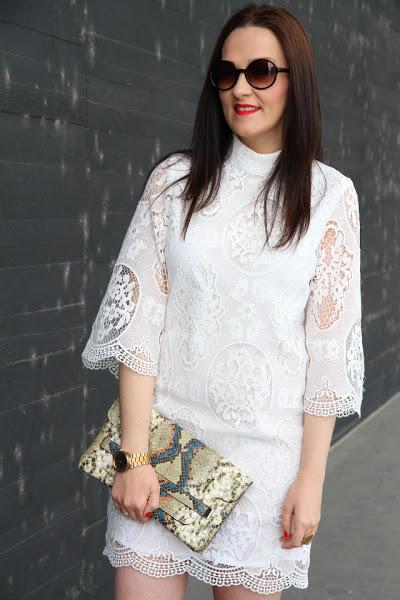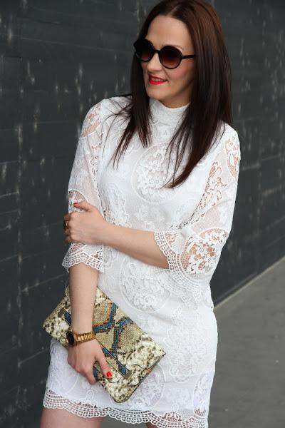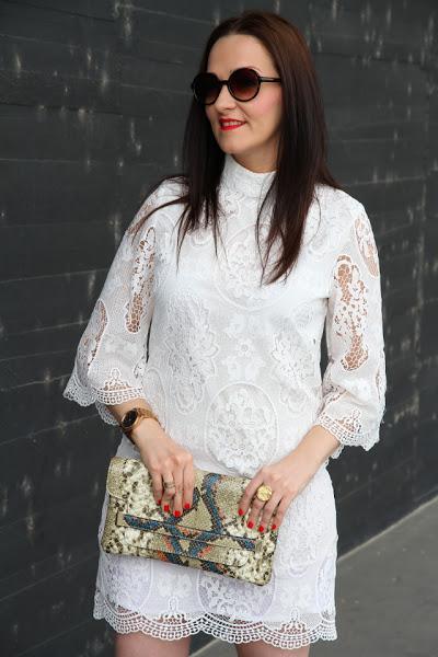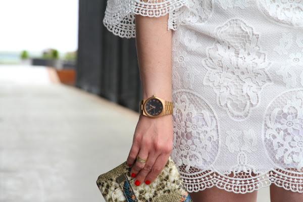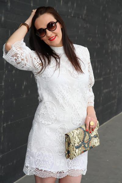 Como ya os adelanté en mi último post, este puente hemos estado de celebración familiar y no sabéis lo bien que nos lo hemos pasado. La verdad es que tengo una familia de 10 y cuando nos juntamos lo pasamos en grande, tanto es que las sobremesas de las comidas se alargan llegando a juntarse con las cenas. Los días anteriores estuve pensando sobre el look que iba a llevar, tenía pensados un par de estilismos pero justo en el último momento me llegó este precioso vestido de guipur blanco. En cuanto lo vi tuve claro que iba a ser el elegido. Es tan bonito que no necesitaba nada más, tan solo le añadí un clutch con estampado animal print y sandalias gladiadoras. Opté por llevar el pelo liso y gafas de sol redondas para cerrar un look boho chic que me encanta y que ya forma parte de mis preferidos para esta primavera-verano.