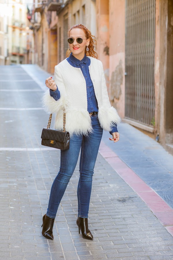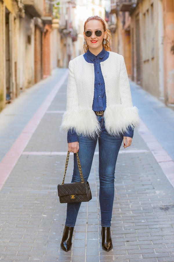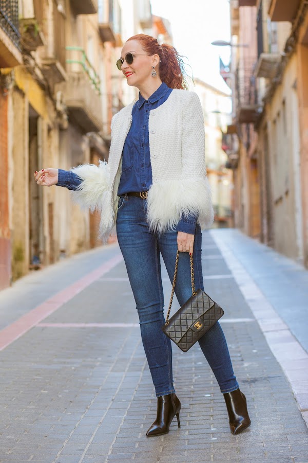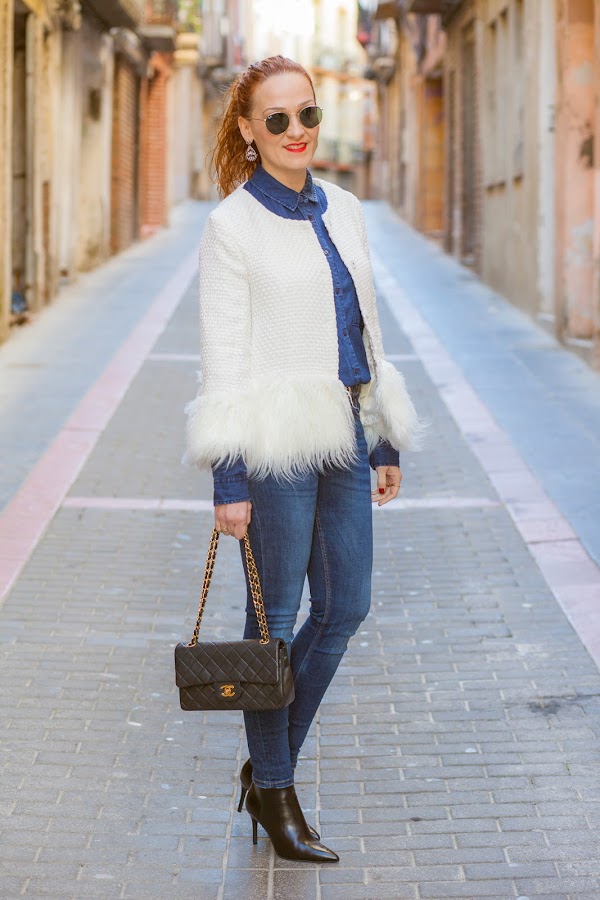 Chaqueta/Jacket: Shein Camisa/Shirt: Stradivarius.Jeans: Zara. Pendientes/Earrings: Zara. Anillos/Rings: Souffeel. Botines/Ankle Boots: Bershka. Bolso/Bag: Chanel.
