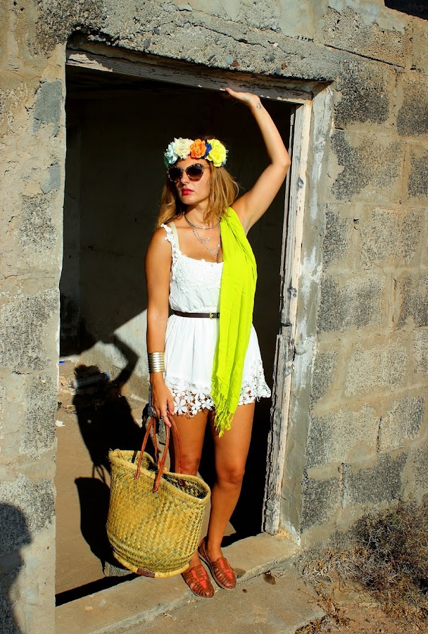 El mono es de MERDADILLO y lo compré por 7â?¬, los guarachos de PRIMARK temporada primavera/verano 14, pañuelo de NATURA (old), cesto de un puesto en el centro comercial LAS TERRAZAS y collares de ZARA.