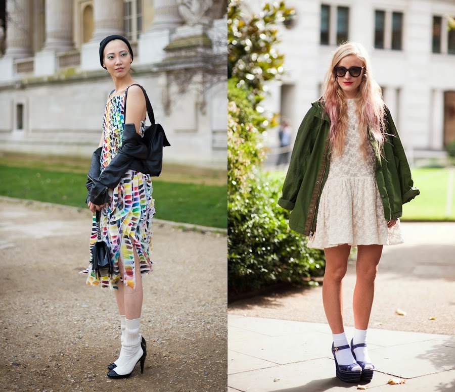 Quizás sea un tema un tanto delicado, por llamarlo así; pero la tendencia, que muchas it-girls han ido instaurando, de acompañar zapatos de tacón, sandalias o, incluso, botines con calcetines blancos, parece que viene para quedarse.
