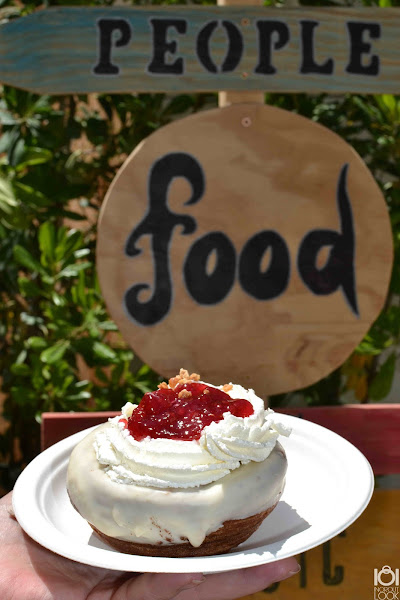 La mía, de chocolate blanco con nata, mermelada de fresa y trocitos de almendra. Una verdadera delicia de combinaciones dulces que aunque no te lo creas, no me empalagó para nada!