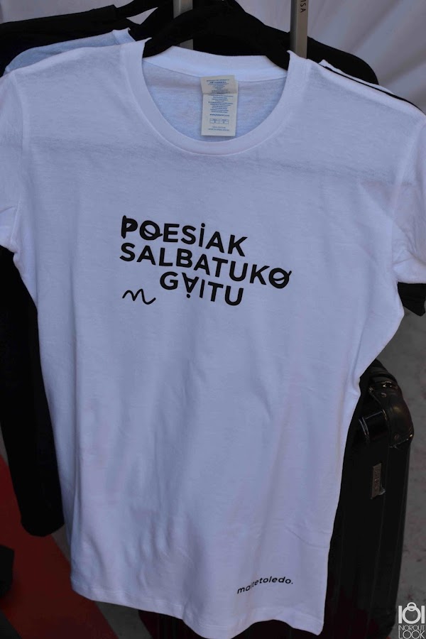Para los días más casuales, tiene camisetas unisex en blanco y negro con su logo y con un precioso mensaje en Euskera que significa: La poesía nos salvará.