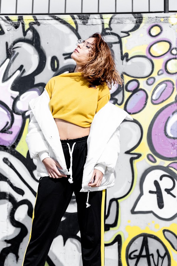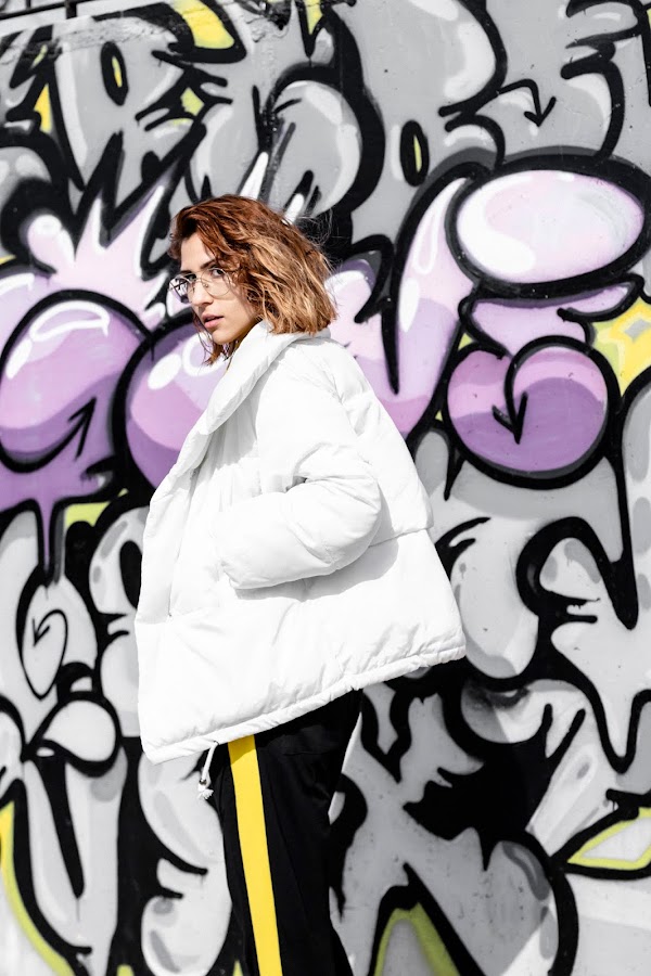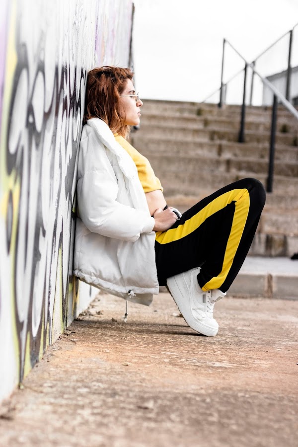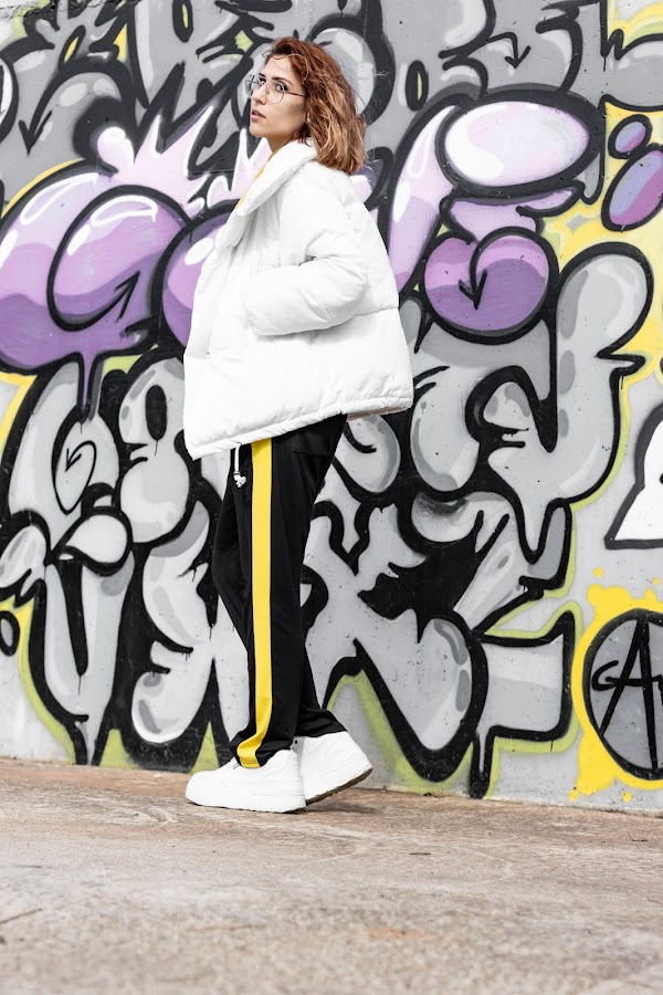 Hoy os traigo un look street style con un abrigo plumas de tamaño oversize en color blanco de ROSEGAL. Me flipa y es que ya sabéis mi amor por lo oversize. Lo he combinado con una sudadera amarilla y unos pantalones de chandal negros con raya lateral amarilla.