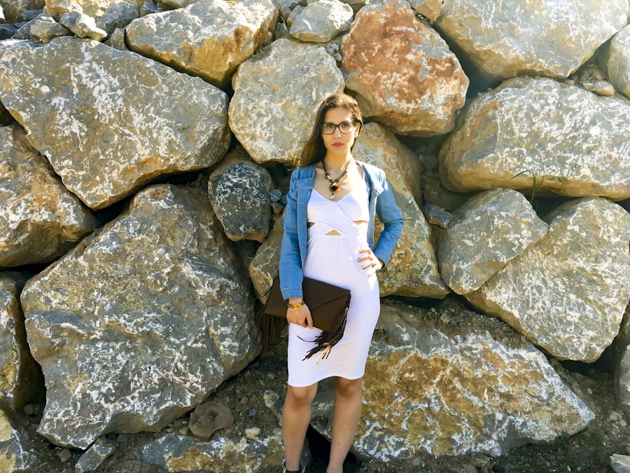 I have combined with a denim jacket, brown platform sandals and a bag of fringes.