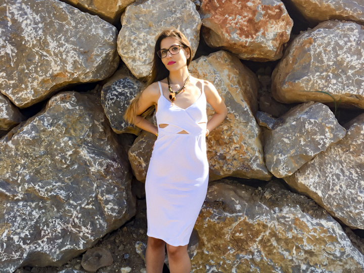 El look de hoy me encanta! Y es que no hay nada mejor que un look total white para el verano! Este es el protagonista de hoy, el color blanco, con un vestido midi ajustado y de escote cruzado.