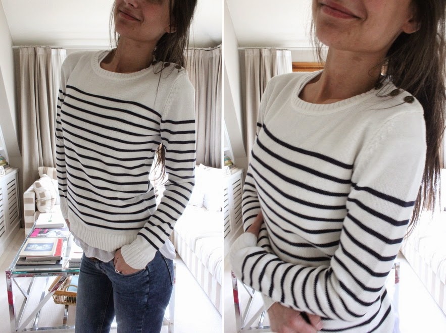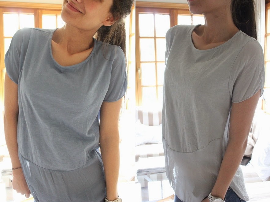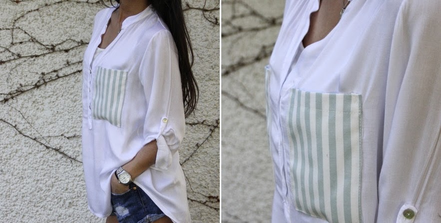 Sudadera bolsillo militar - 28,50? Jersey Marinero - 25,50? Blusa efecto seda bolsillo dorado lentejuelas - 36? Blusa camisa blanca bolsillos rayas azules y blancos - 36? Camiseta espalda corazon - 24,90? Camiseta básica + gasa - 22,90? Pantalón ancho estampado - 68? Vestido seda gris edición limitada - 120? Collar enganches brillantes - 26? Pulsera terciopelo estrellita - 3?