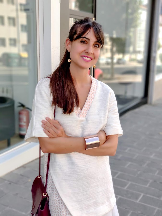 Top: Amaya Arzuaga / Pantalón: Adolfo Domínguez / Sandalias: Massimo Dutti/ Bolso: Zara Fotografías: Álex López