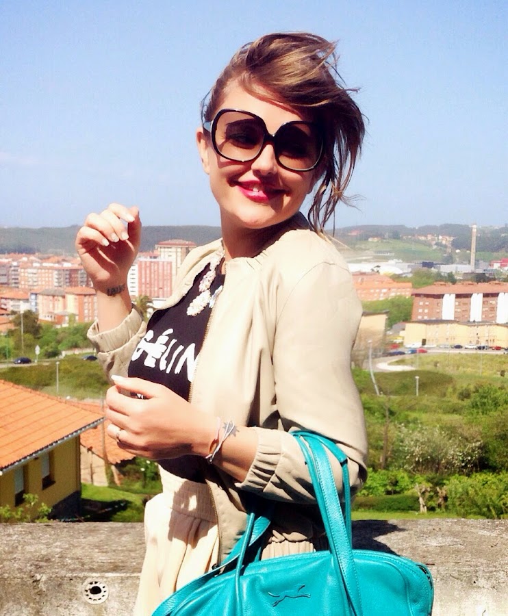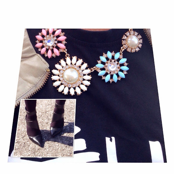 Decidí combinarla con negro y con un toque de color en el bolso y en el collar también de Oasap.