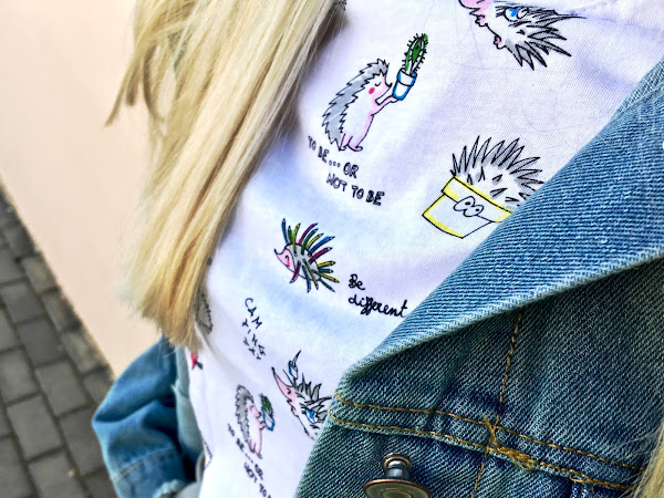 La he combinado con una camiseta de manga corta con nudo delantero y estampado de erizos súper cute!!