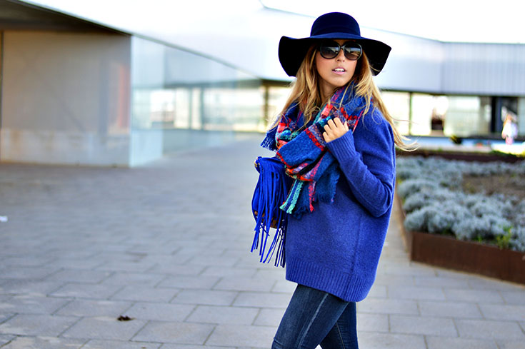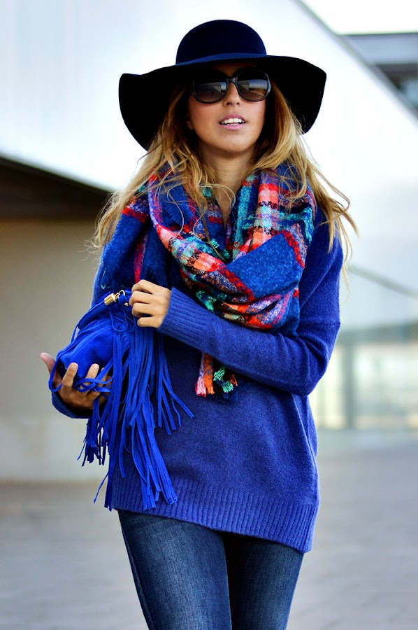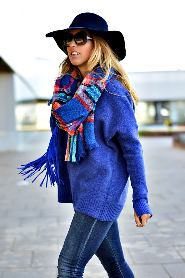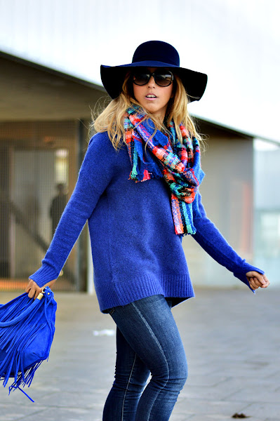 Hola a todos, ¿cómo estáis? Hoy os traigo un ejemplo clásico de cómo los accesorios pueden cambiar totalmente un look. Prendas tan básicas y esenciales como unos jeans y un jersey liso de lana, donde la diferencia la marcan los complementos. He optado por combinar prendas en la misma gama de color, el azul Klein, y diferentes estampados. Los cuadros para el fular y el zigzag en los tacones que ya visteis la semana pasada por el blog. Por cierto que ambos accesorios los adquirí en rebajas, por si os gustan, aprovechad ahora!