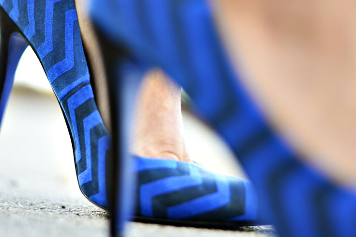 Hi everyone! How are you? Today´s outfit is the perfect example of how accessories can completely change the result. I chose basic and essential items, as a pair of jeans and a solid colour wool sweater and the accessories make the difference. I wanted to combine clothes in the same range of colour, blue Klein, and different prints. Plaid scarf and zigzag heels that you´ve already seen on the blog last week. By the way, I purchased both accessories on sales!