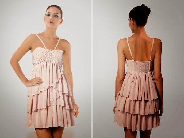 El primer vestido es color rosa pastel, en tendencia esta temporada con falda plisada y tirante finos. El segundo vestido es de gasa caida en color rosa con apliques en plateado y escote tipo corazón. Sandalias de tacón con strass en plateado, y clutch con calavera y piedras en plateado con hueco para dedos. Como calzado casual "lo que más me gusta de esta página" opté por un zapato inglés con suela de color en contraste y cordones a juego, unas sandalias en rosa crema de dedo con motivo de lazo y por último clutch dorado con piedras y cierre de lazo.