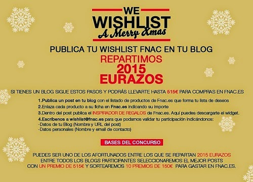 Otras navidades más fnac nos da la oportunidad a l@s bloggers de participar en el sorteo de la Wishlist de su página. El concurso consiste en publicar en el blog una lista de deseos que te gustaría que te regalasen en las próximas fechas, en la que la suma de los artículos sea igual o inferior a 2014. Puedes consultar las bases del sorteo AQUÍ. La web de fnac cuenta con el inspirador de regalos co ...