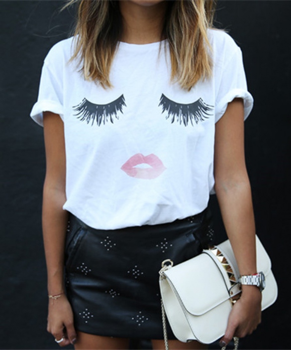 Lo primero que os enseño es una camiseta muy básica blanca, con unas pestañitas y unos labios dibujados, me parece ideal para combinarla con cualquier cardigan negro y unos jeans negros o normales y corrientes en otoño.