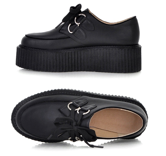 Esta sudadera que os enseño, con una camisa blanca por abajo y unos pantalones negros o incluso una falda tipo skater para llevar un look casual, también disponible en beis. Al igual que el siguiente jersey verde camuflaje, con la falda que os acabo de decir, medias tupidas y unas botas de militar negras o las plataformas que os dejo abajo que están a la venta en blancas también.