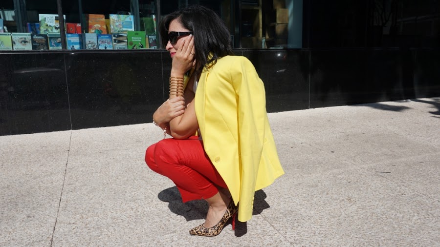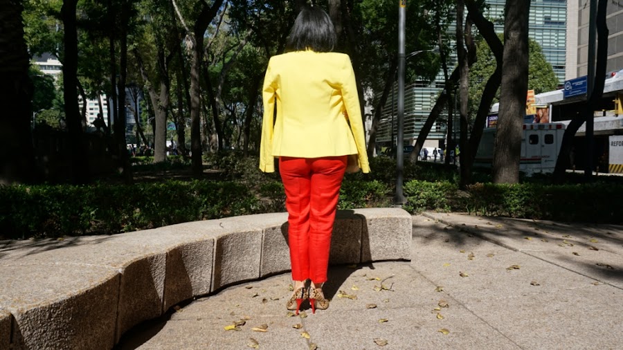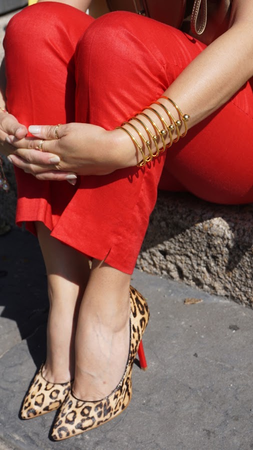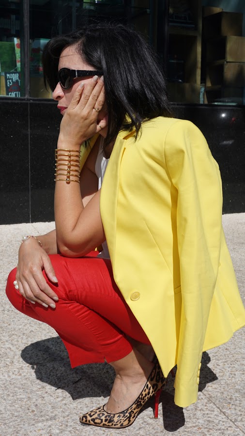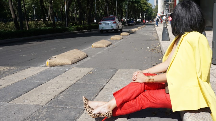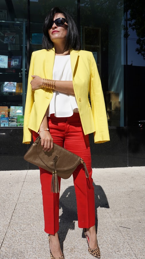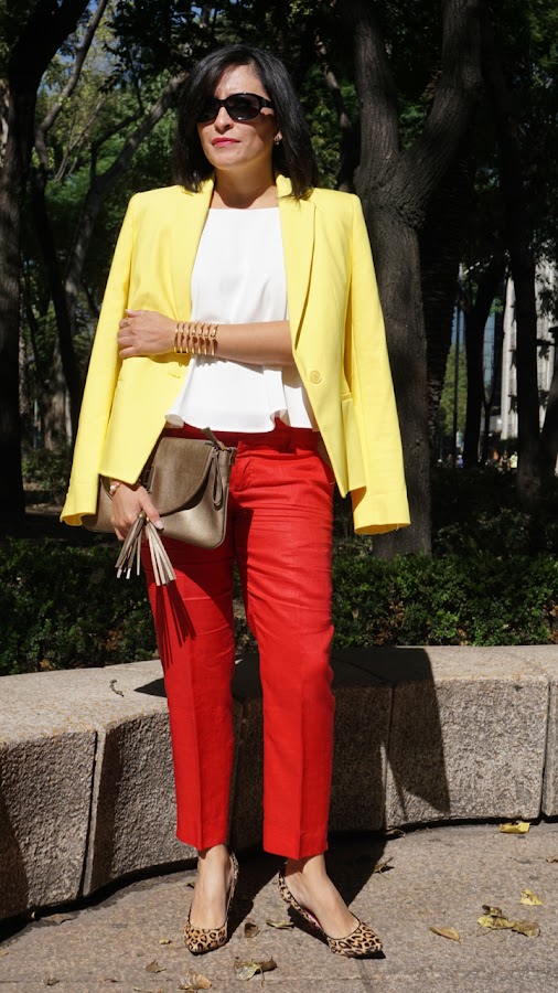 A favorite mix is the white and red, this time I took a risk and complement it with my favorite color, truly loved it although it is striking, that"s why the accessories are discrete a pair of animal print heels, a ocher clutch and a bracelet from an ultra talented Mexican artist Carolina Alatorre that I am going to use it more than a lot. Hope you liked it. Happy start of the week.