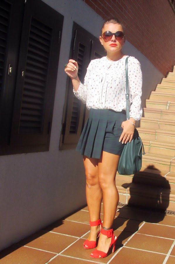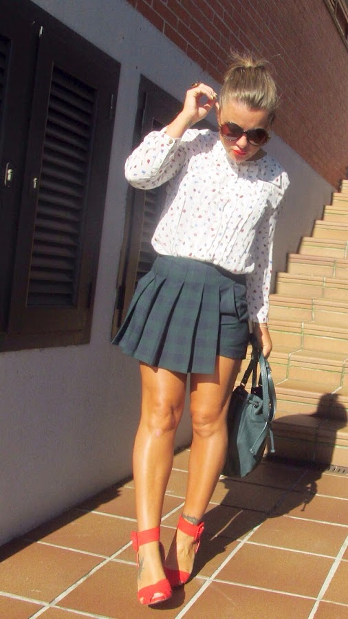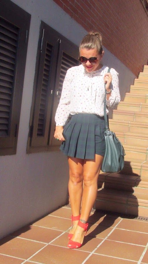 Ésta falda es del invierno pasado pero con una blusa con estampado estival y sandalias rojas me pareció perfecta para un look de trabajo, formal, pero con un toque de color y alegria. ¿Qué os parece?BLUSA: PURIFICACIÓN GARCÍA.