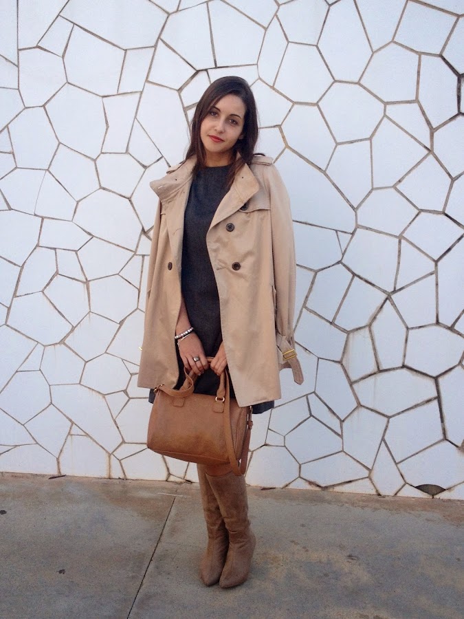 Good night loves! Today I show you a working girl outfit with a grey dress with funnel neck. I love this kind of dress that are simply and makes a smart outfit. In addition, these dresses you can wear to go working or to go out with your friends, because they are always a good idea to wear it. In the outfit of the day, I wore it with trench, beige boots and my bowling bag.
